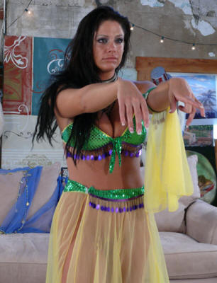 Angela believes to be at the yearly company party. Just like every year the boss has chosen the costumes for everyone attending to wear. Angela seems to enjoy her harem's slave costume but she certainly does not believe that she could ever be a harems slave herself. She even makes fun of me, her boss, for having fantasies like this. She keeps rambling on about this being every man's fantasy and that she is not that kind of girl. BLAblabla I do get her attention though when I show her the missing piece to the costume, a beautiful necklace which perfectly goes with her outfit.