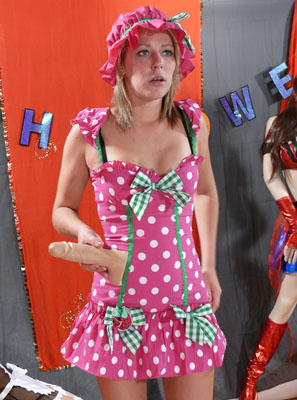 Nikki Mae, our sexy yet inexperienced model, finds out the hard way why some Halloween catalogue shoots can be, let's say, tricky. At first of course, she seems self assured and ready to go. Being inexperienced and all, her moves are a bit too fast for me, the photographer, to take her pictures and that is when it dawns on me that it might be a good idea to freeze her in place. Needless to say, the girls thinks that my idea to freeze her is a bit strange and certainly not possible. Well, let's see what some of our Halloween gadgets can do, after all some of the costumes and accessories are supposed to be demonic and wicked. Sure enough, she laughs again, until she actually activates one of the gadgets, that is.