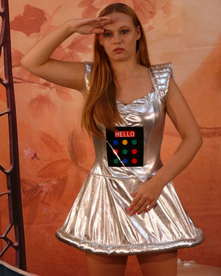 Tiffany, who believes to be at a costume party, does not seem to be too impressed by my somewhat clumsy attempts to hit on her. I cannot help but notice though that she is wearing this cute and very sexy Robot costume which brings up the question whether or not she is into the, let's call it, Robot game. Of course not, she just likes the sexy dress. Too bad honey, we are going to play anyway. Before she quite knows what hits her, she is mine to program. Needless to say, we get rid of the "human program" she was running before resetting her to her original robot program. The transformation goes smoothly and there seems to be no memory left that says she has ever been anything else than a robot. What follows is a lot of hot fun, bend over masturbation, plenty of yes masters, robotic repetition of orders, power-level adjustments, orgasms on command and as it turns out, the buttons on her costume actually do have a function.